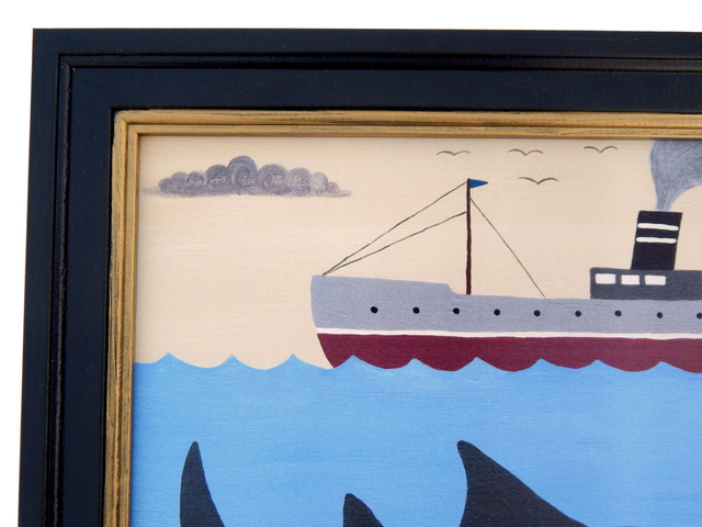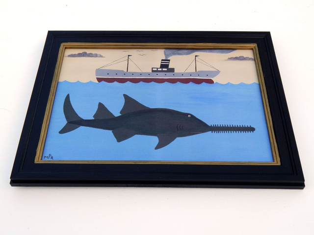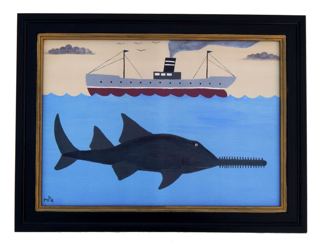Matt Rix, Naïve Style Maritime Scene with Sawfish and Steamship, Print, Framed