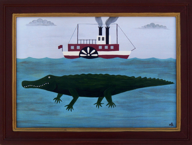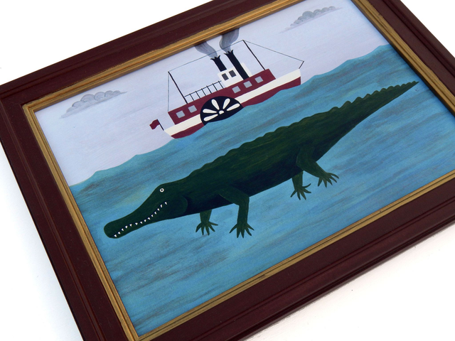 Naïve Folk Art River Scene With Alligator And Paddle Steamer Fine Art Print By Matt Rix